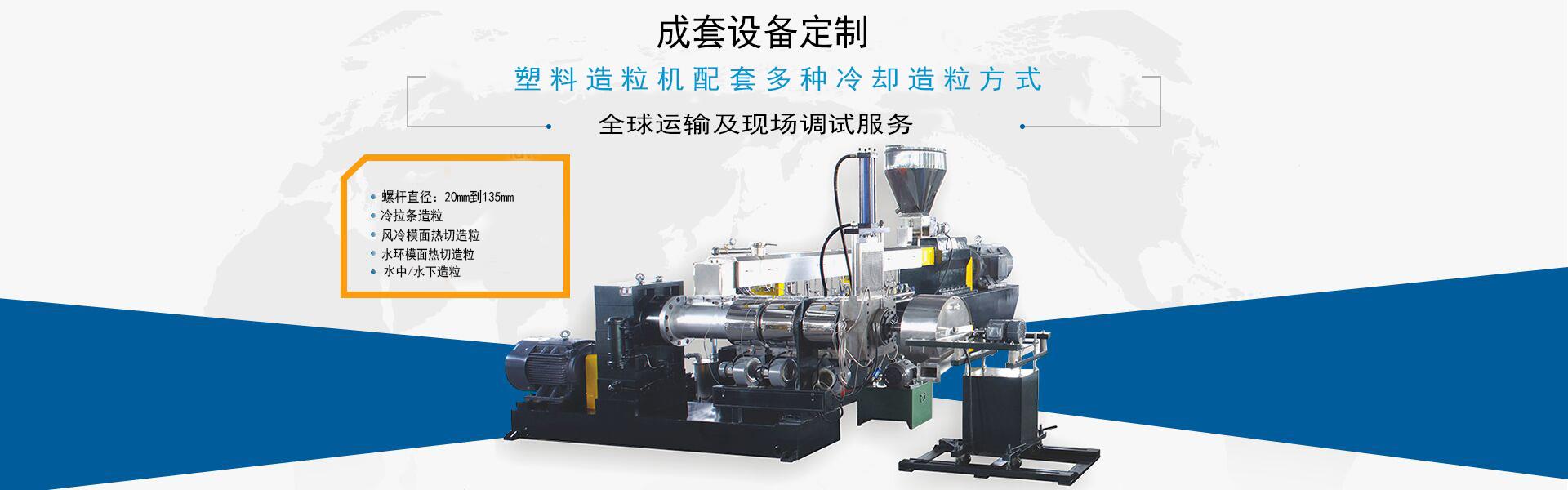 4. 最大機(jī)頭壓力:擠出過程中,在螺桿末端的熔體會(huì)建立起壓力,該靜壓力會(huì)對(duì)螺桿產(chǎn)生軸向推力,沿程的壓力分布造成的壓力梯度的變化也會(huì)對(duì)螺桿產(chǎn)生軸向推力,二者的合力就作用在傳動(dòng)系統(tǒng)的推力軸承上。由于雙螺桿造粒機(jī)的建壓能力比較低,軸向推力也相對(duì)小,故止推軸承串的軸承個(gè)數(shù)少,不像單螺桿擠出機(jī)和嚙合異向雙螺桿擠出機(jī)可以建立較大的機(jī)頭壓力,因而配備了較大的止推軸承串。雙螺桿造粒機(jī)組的最大機(jī)頭工作壓力一般小于20MPa。